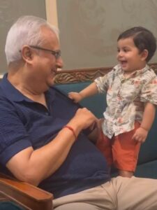 इन अनमोल क्षणों में दादा-पोते का अपनापन और स्नेह झलकता है, जो परिवार के रिश्तों की गहराई और पीढ़ियों के बीच प्रेम का सुंदर प्रतीक है।