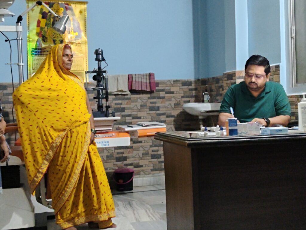 आँखों का जाँच करते डॉक्टर आशीष कुमार