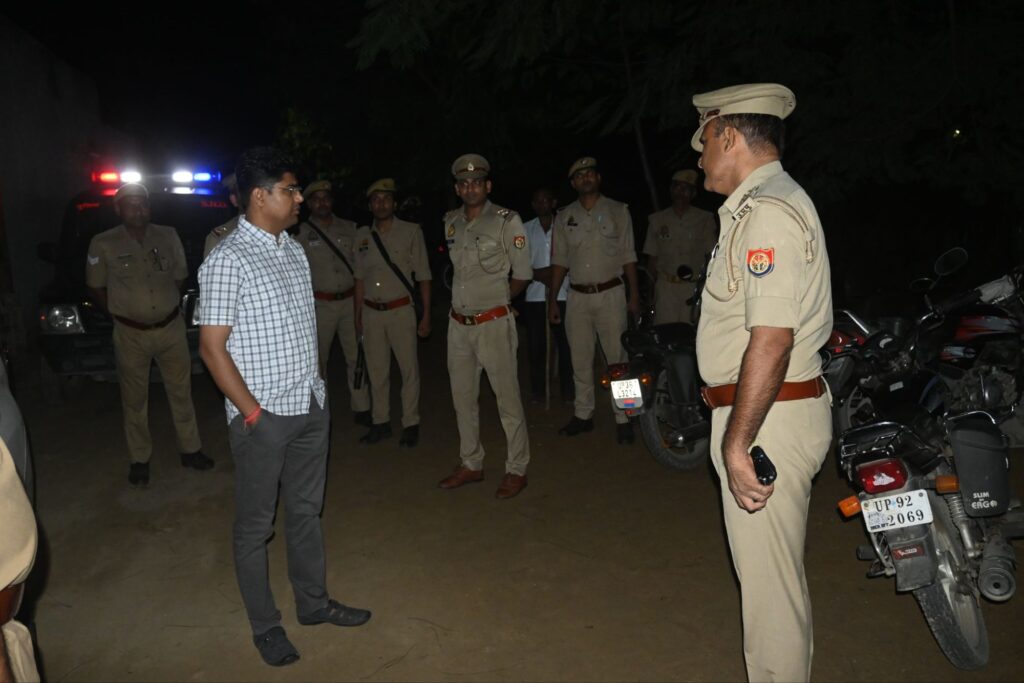 दूसरी तस्वीर में वे रात के समय पुलिस बल के साथ बाहर खड़े होकर निर्देश दे रहे हैं।