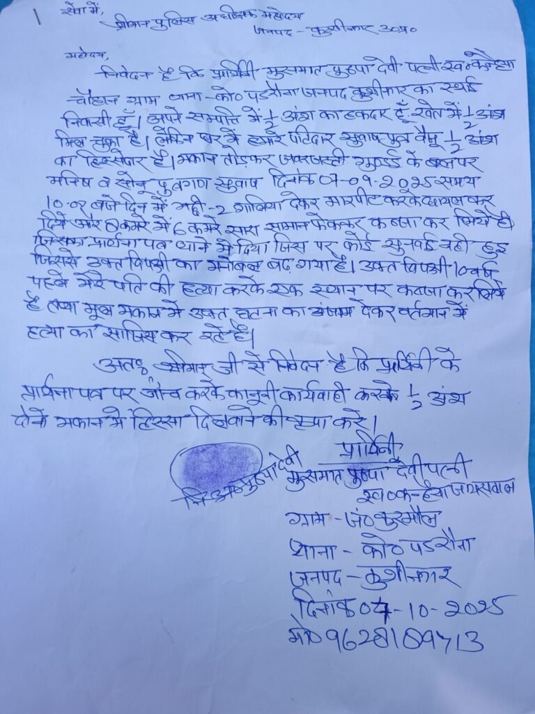 अब देखना यह होगा कि क्या पडरौना पुलिस सक्रियता दिखाकर न्याय दिला पाएगी या पीड़िता की पुकार फिर अनसुनी रह जाएगी।