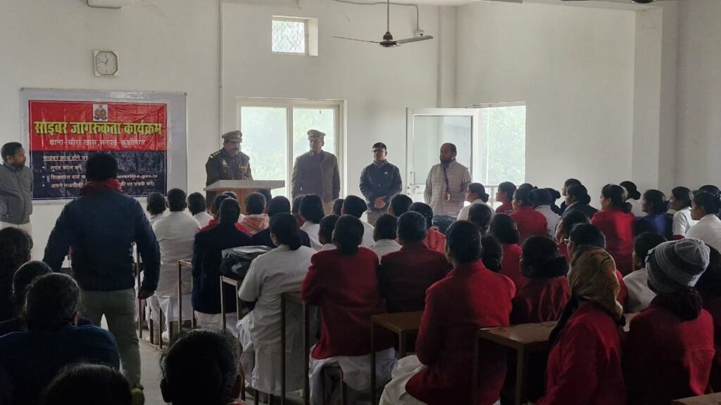 कुशीनगर। पुलिस अधीक्षक कुशीनगर श्री केशव कुमार के निर्देशन में चलाए जा रहे “साइबर जागरूकता अभियान” के तहत जिलेभर में लगातार जागरूकता कार्यक्रम आयोजित किए जा रहे हैं। इसी क्रम में थाना चौराखास क्षेत्र स्थित एस.टी.एन.टी. इंस्टिट्यूट में साइबर सेल टीम द्वारा छात्राओं को साइबर अपराधों के प्रति जागरूक किया गया। यह कार्यक्रम अपर पुलिस अधीक्षक कुशीनगर श्री सिद्धार्थ वर्मा के पर्यवेक्षण तथा क्षेत्राधिकारी तमकुहीराज श्री राकेश प्रताप सिंह के नेतृत्व में संपन्न हुआ।