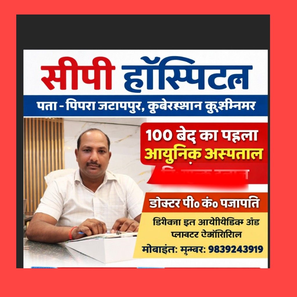 कुशीनगर जनपद के पिपरा जटामपुर, कुबेरस्थान स्थित सीपी हॉस्पिटल आज क्षेत्र में स्वास्थ्य सेवाओं का प्रमुख केंद्र बनकर उभरा है। एक परिवार के संकल्प और वर्षों की मेहनत से साकार हुआ यह अस्पताल अब आमजन के लिए आशा की किरण साबित हो रहा है। स्थानीय लोग इसे स्नेहपूर्वक “सीपी प्रजापति” के नाम से जानते हैं।