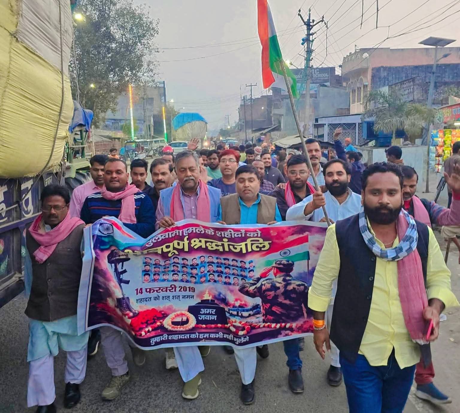 पुलवामा हमले में शहीद जवानों की स्मृति में निकला श्रद्धांजलि जुलूस