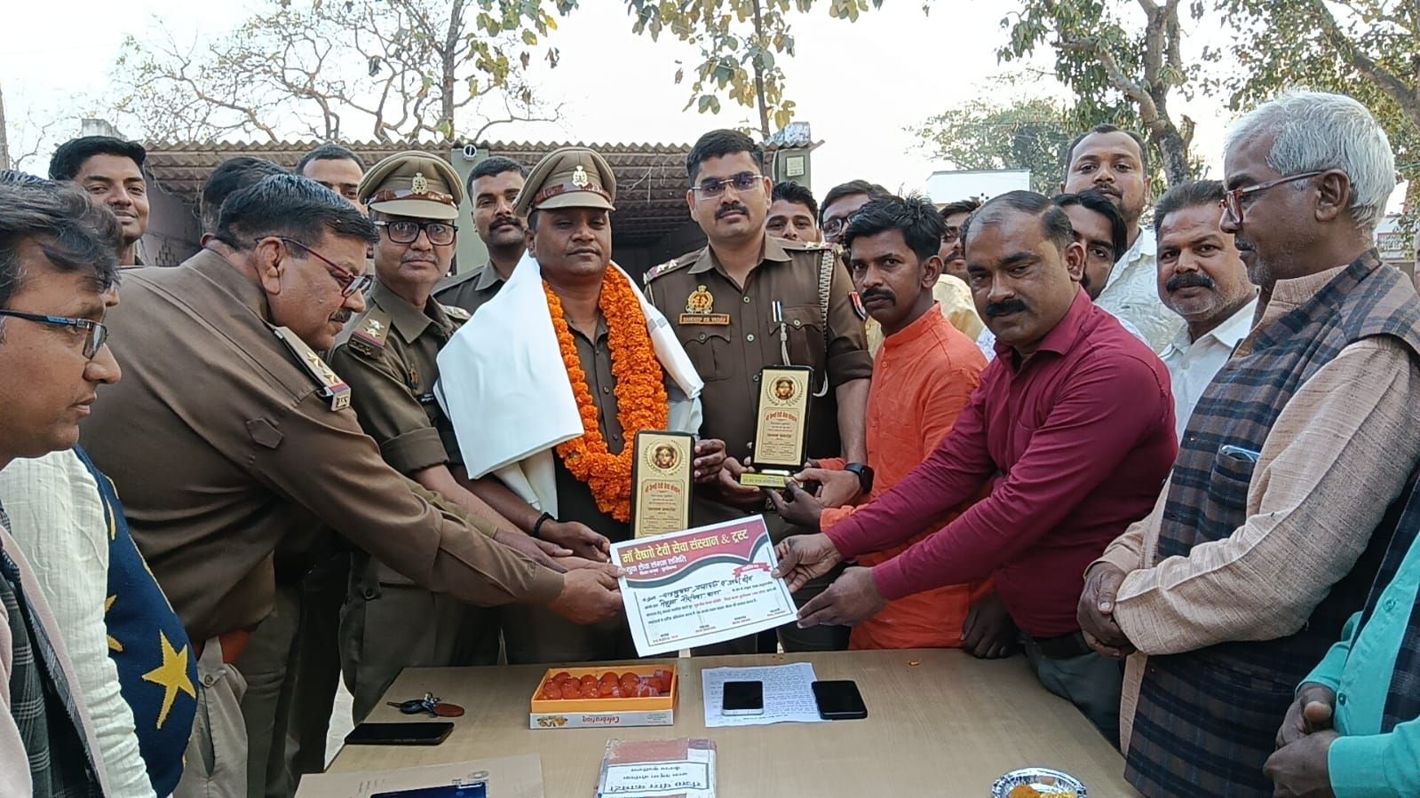 रविवार को व्यापार मंडल पिपरा के अध्यक्ष प्रेम मद्धेशिया, उपाध्यक्ष राजू कुमार चंदन सहित अन्य पदाधिकारियों ने थाने पहुंचकर प्रभारी निरीक्षक चंद्रभूषण प्रजापति एवं उनकी टीम का माल्यार्पण कर अंगवस्त्र और सिल्वर शील्ड भेंट कर सम्मान किया। ग्राम प्रधान ललन गुप्ता, विजय कुमार, अनिल कुशवाहा, मारकंडेय गुप्ता और दिनेश जायसवाल के नेतृत्व में क्षेत्र के दर्जनों गणमान्य नागरिकों ने भी पुलिस टीम का अभिनंदन किया।