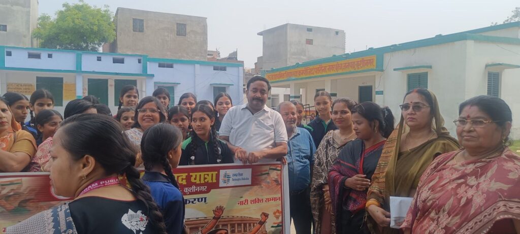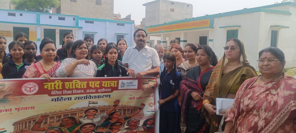 जनपद कुशीनगर में सामाजिक जागरूकता की दिशा में एक महत्वपूर्ण पहल करते हुए दिनांक 18 अप्रैल 2026 को वृहद् पथयात्रा कार्यक्रम का आयोजन किया गया। कार्यक्रम की अध्यक्षता सदर विधायक श्री मनीष जायसवाल ने की, जिसमें विभिन्न विभागों के अधिकारियों, शिक्षकों, छात्राओं एवं हजारों की संख्या में महिलाओं ने उत्साहपूर्वक भाग लिया।
